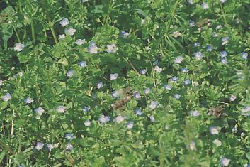 極めて小さい可憐な花です。 よーく目を近づけて見て見ないと立っていては輪郭が判らないほど点のような花です。 マクロレンズでもなかなか焦点が合いません。それ程に小さい草花です。