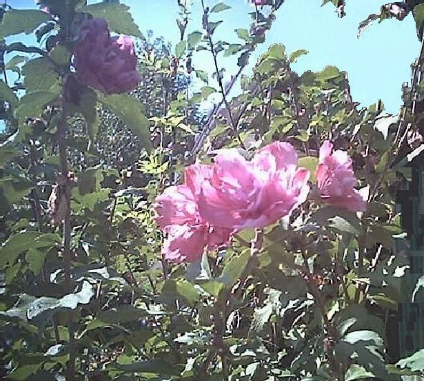 私はお隣さんと長い付き合いでしたのでこの芙蓉には特別な感傷を自然と入っているようです。 若いときは大変に活発な向意気の強い人でしたが、一面俳句や短歌や絵をよく嗜むところがあり晩年は物静かで人の話を聞き対話の好きな気さく老人に成っていました。 この芙蓉の赤の八重の趣にはこの印象が大きく締めています。 何か白一重の芙蓉とは違う表現に苦しむ趣です。
