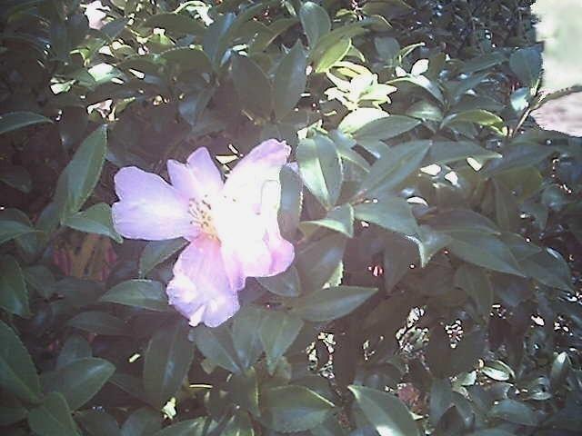余り強い日差しではこのマゼンタの色合いが出ません。 白くハレーションを起して花のピンクが飛んでしまいます。 山茶花の葉の濃い青色の中に一つぽつんと咲いた花に生垣のはずれからのこの漏れ日のような光が斜めに入ってきます。