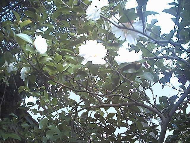 白の山茶花は風に揺られてピントが甘く成り、光が強く入る時ハレーションを起しています。むしろ山茶花は木漏れ日の景色を主役とするために自らは目立たぬ様に白の演出をしている様です。 周囲が雑木に囲まれたこの山茶花は風と風との合間は薄暗く明暗の祭典です。