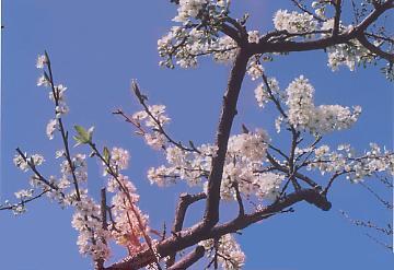 ■解説 春の透き通った青空にプラモの花が咲き乱れています。
