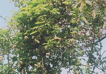 この様に一本の支柱にびっしりとかずらが絡んでいます。 そして、沢山の花が咲きびっしりと実が成ります。 実に付いては実りましたらまたご覧に入れます。
