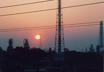 町には今日も大勢の人が蟻のように働きそれをかき消す町の姿が映ります。 これを人類は繰り返して来たのですね。 この夕日の色を見ると、真に色即是空 空即是色を思い知らされ”自分も老いたかぁー”と神妙に成ります。 夕日だけではこの感傷(趣)にはなれないでしょう。 町の全ての色を消す姿がこの趣を呼び起すのでしょう。また、年齢によりこの夕日と町を見る感傷は違うものですね。