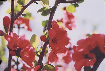 ■ボケの赤花と朝日 [2009/04/01(Wed) 08:32]