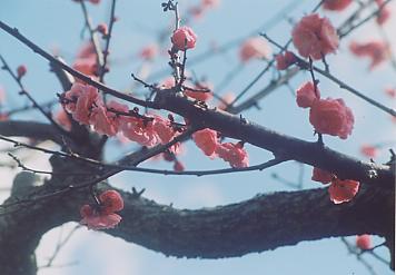 ■解説 この紅梅は樹齢150年以上の老いた紅梅です。