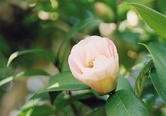 大変に上品で穏やかでな趣きがあります。 藪椿と違って花や木姿に主張するところが無く、つぼみの3分咲きがその印象を強めます。 葉も一回り小さく、葉色も濃緑ではなくどちらかと言えば緑の葉にちかいと感じます。 その趣と咲き方から、私は「白玉椿」というよりは「乙女椿」と名付けたい気がします。 余り、強い日差しは似合いません。 物静かなしっとりとした天候の時にその趣を強く漂わせます。